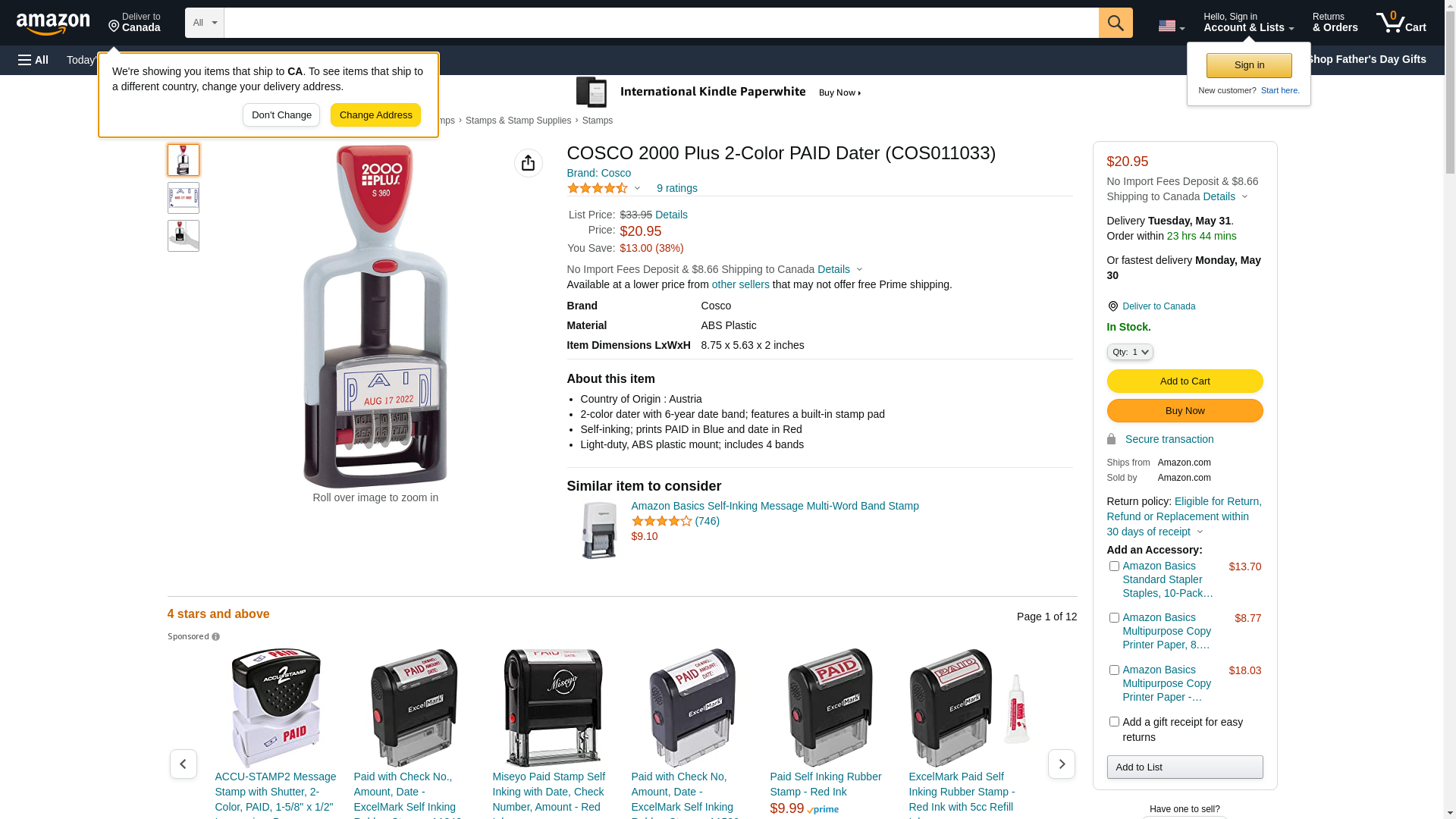 COSCO 2000 PLUS Two-Color Word Dater, "Paid," Self-Inkin