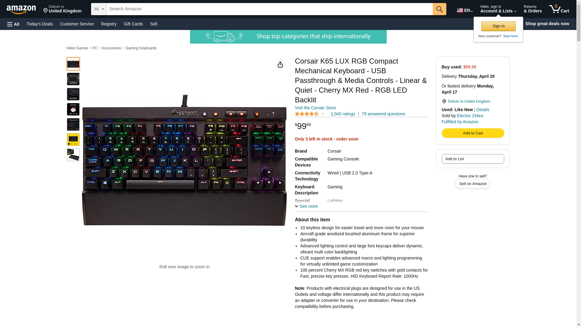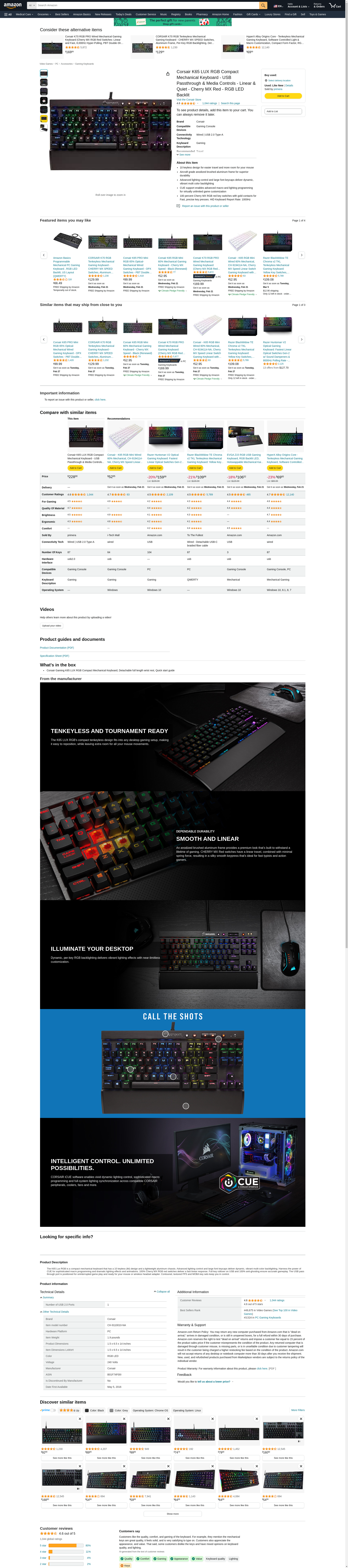 Corsair Gaming K65 LUX RGB Compact Mechanical Keyboard (Renewed)