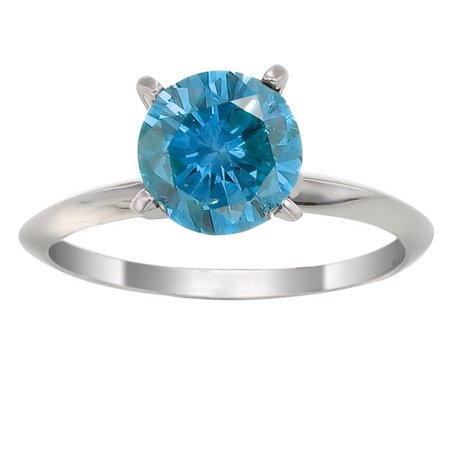 14K White Gold Blue Diamond Solitaire Ring (1.50 CT). The Blue Diamonds are Irradiated. The minimum total diamond carat weight is 1.46 CT. This product comes with a 90 day seller warranty.