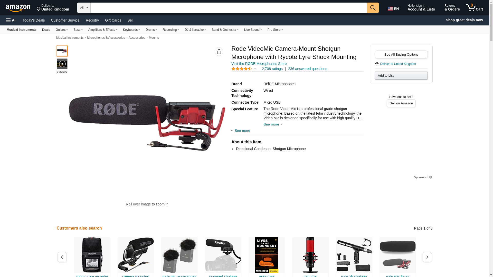 - Rode Videomic Shotgun Microphone with Rycote Lyre Mount