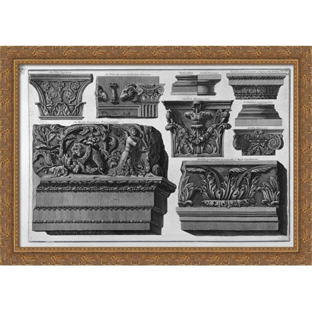 Capitals and friezes (Farnese Gardens, Roman Villas) 40x28 Large Gold Ornate Wood Framed Canvas Art by Giovanni Battista Piranesi