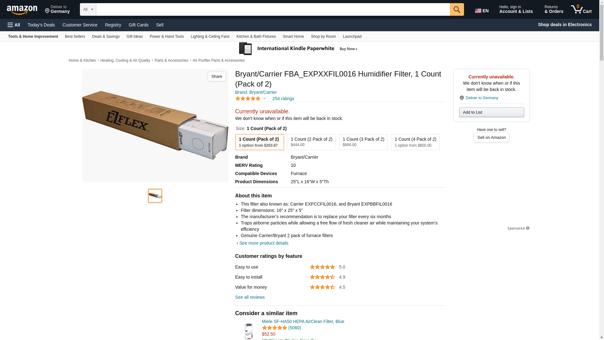 - filter only, and does not include the end caps included with purchase of corresponding air cleaner cabinet (Carrier Day-Night MACA, MPKA, EZXCAB series, EXPXXFIL0016 for MACA & MPKA series air cleaners
