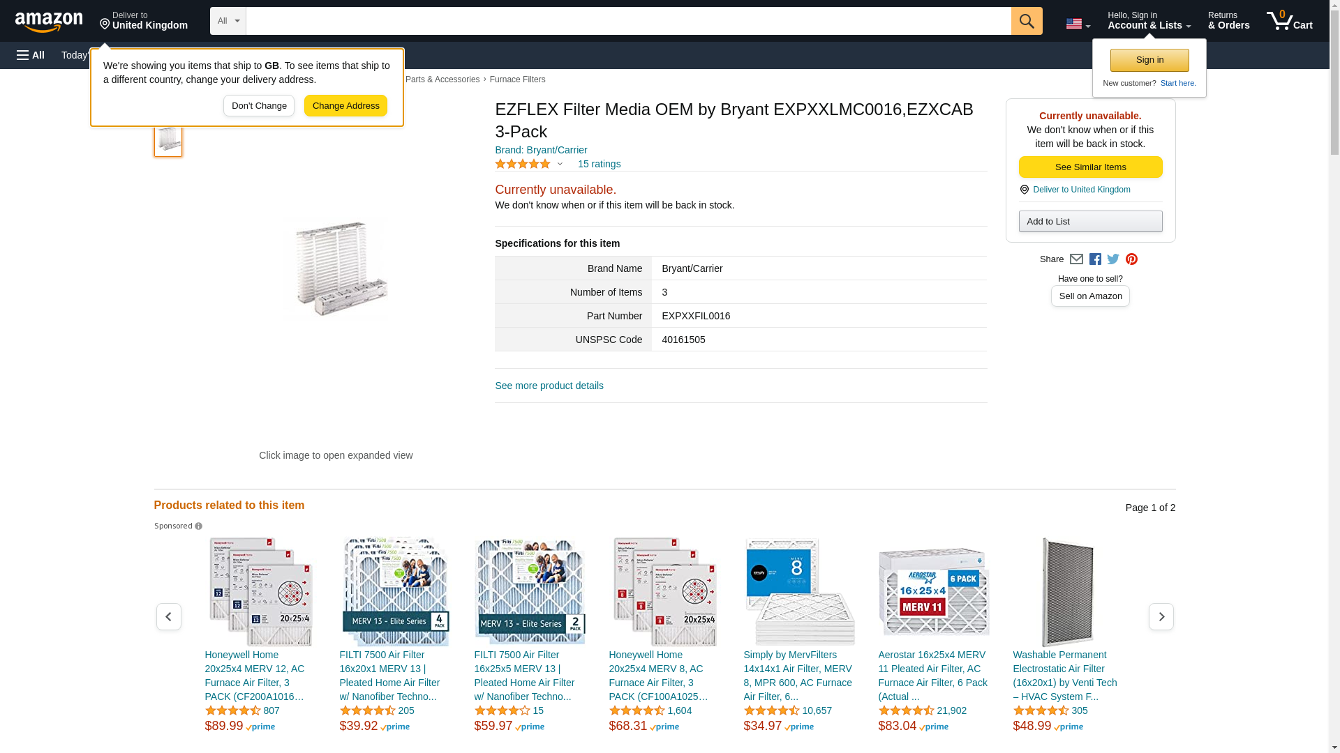Carrier/Bryant EXPXXFIL0016 EZ Flex Filter | 2 Pack Features: - Original (OEM) expandable filter - MERV 10 - Rated Filter - Easy assembly requires no combs - Change at least twice a year Technical Specs: - MERV 10 (2 Pack) efficiency filter - Expanded Filter Nominal Size: 16" x 25" x 5" - Expanded Filter Actual Size: 15-3/4" x 24-3/4" x 4-3/8" - Filter fits Air Cleaners Cabinets: Carrier EZXCABCC0016, Bryant EZXCABCC0016, Cabinet Carrier Day-Night MACA, MPKA, EZXCAB series, EXPXXUNV0016 for MACA & MPKA seriesEXPXXFIL0016 EZ Flex Filter, Factory Original (OEM) high efficiency Merv 10 filter media (2 Pack). This filter also known as: Carrier EXPCCFIL0016, and Bryant EXPBBFIL0016, is the filter only, and does not include the end caps included with purchase of corresponding air cleaner cabinet (Carrier Day-Night MACA, MPKA, EZXCAB series, EXPXXFIL0016 for MACA & MPKA series air cleaners). The EXPXXFIL0016 EZ Flex expandable media filter efficiently traps airborne particles while allowing a free flow of fresh cleaner air while maintaining your system's efficiency. This EZ Flex MERV 10 rated filter's large high quality synthetic surface design allows a high holding capacity of dust pollen, molds, smoke, tobacco, grease, soot, bacteria, and pet dander. This EZ Flex pleated filter comes collapsed and must be expanded and snapped into black plastic end caps. The END CAPS AREN'T INCLUDED with this filter purchase. The would come with purchase of the EZ Flex Air Cleaner. EZ Flex Filter Maintenance: The manufacturer's recommendation is to replace your filter every six months.