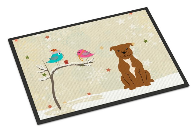 Carolines Treasures BB2519MAT Christmas Presents Between Friends Staffordshire Bull Terrier Brown Indoor or Outdoor Mat&