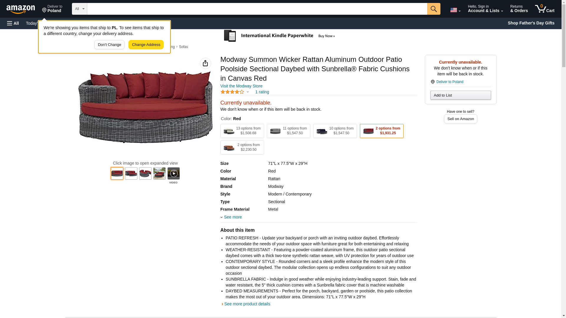 Modway EEI-1993-GRY-RED Summon Outdoor Patio Sunbrella Daybed in Canvas Red