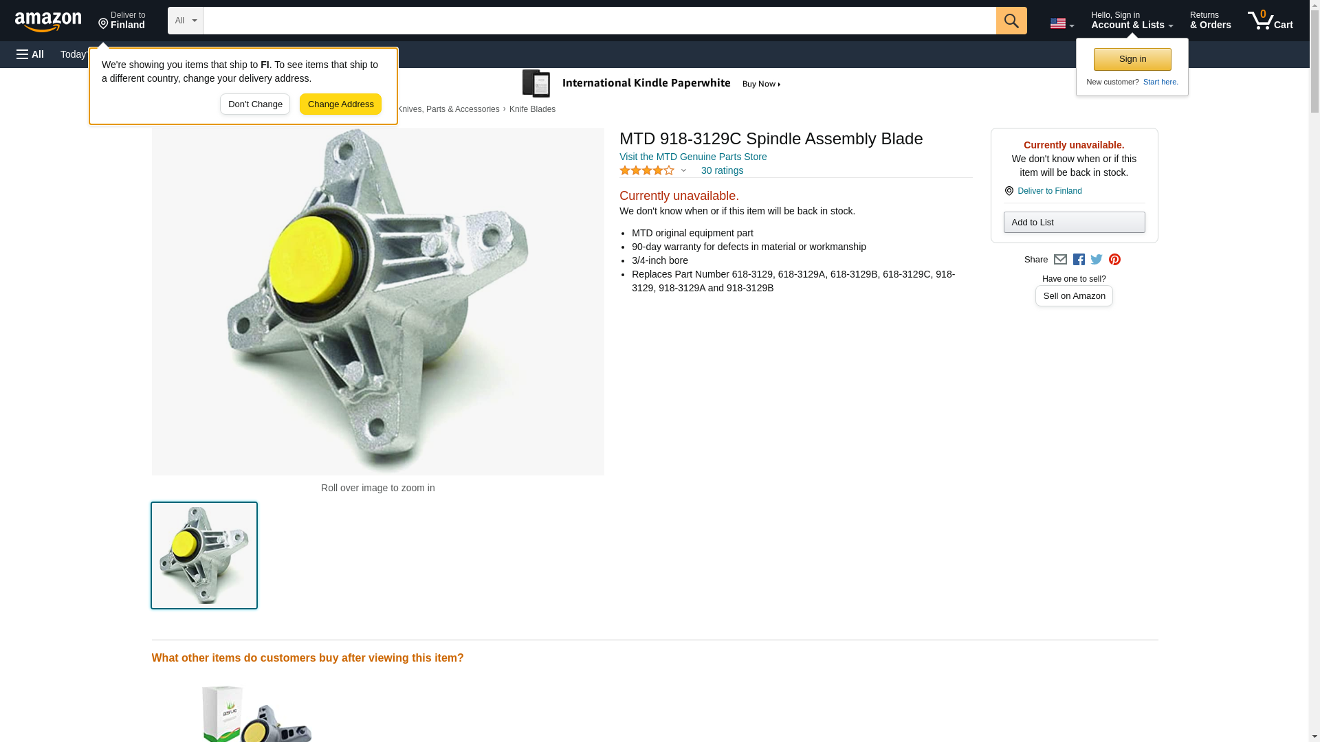 Cub Cadet 918-3129C Spindle Asm-Blade