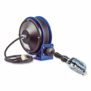 Coxreels PC10-3016-E Compact efficient Heavy Duty Power Cord Reel with a Incandescent Caged Drop Light with Tool tap