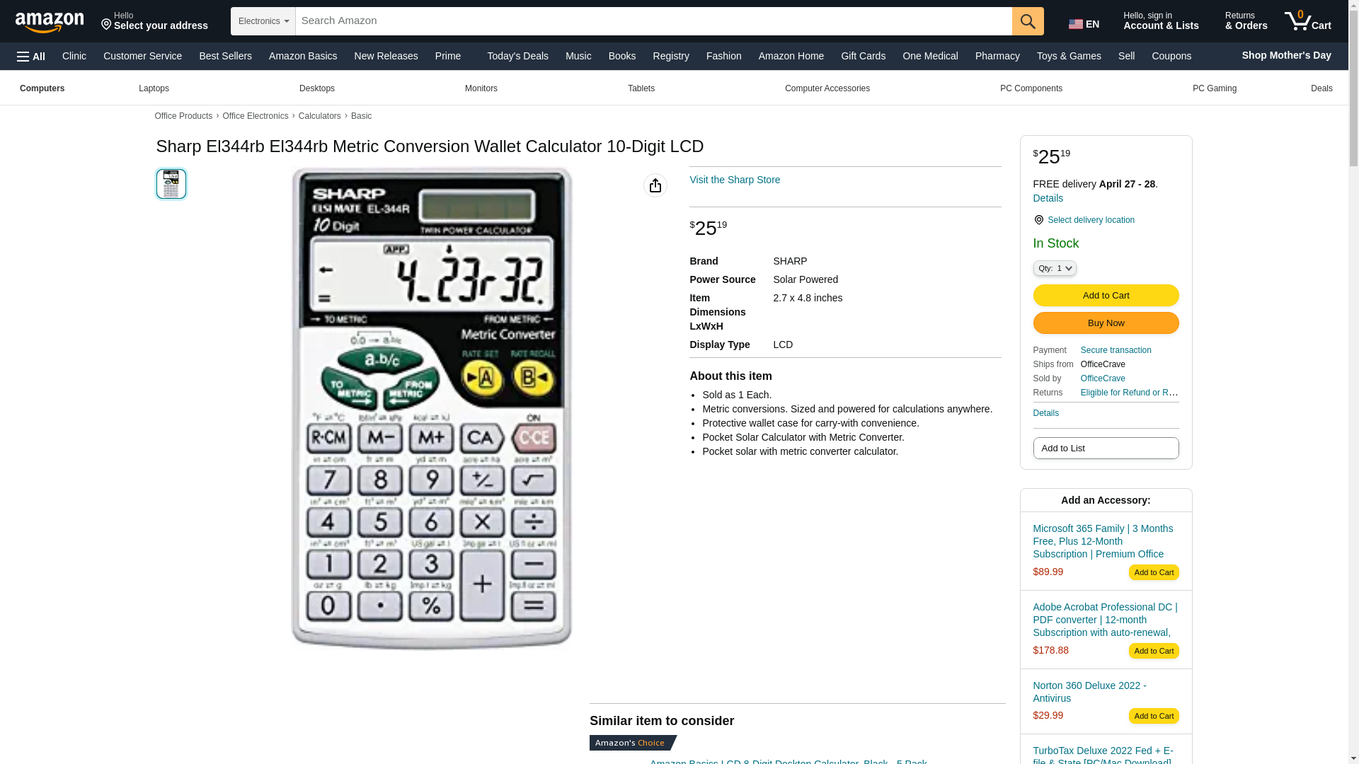 Sharp El344rb El344rb Metric Conversion Wallet Calculator 10-Digit LCD