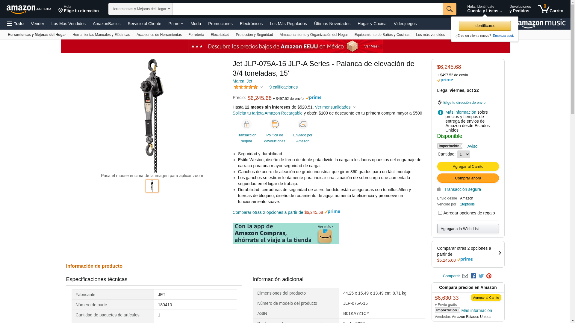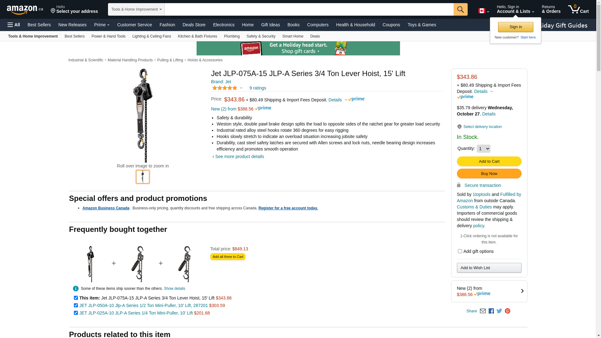 ![]() homeessentialsdirect.com | JLP-075A-15 | 1 | -2 | 1 | 1 @ $362.94 |