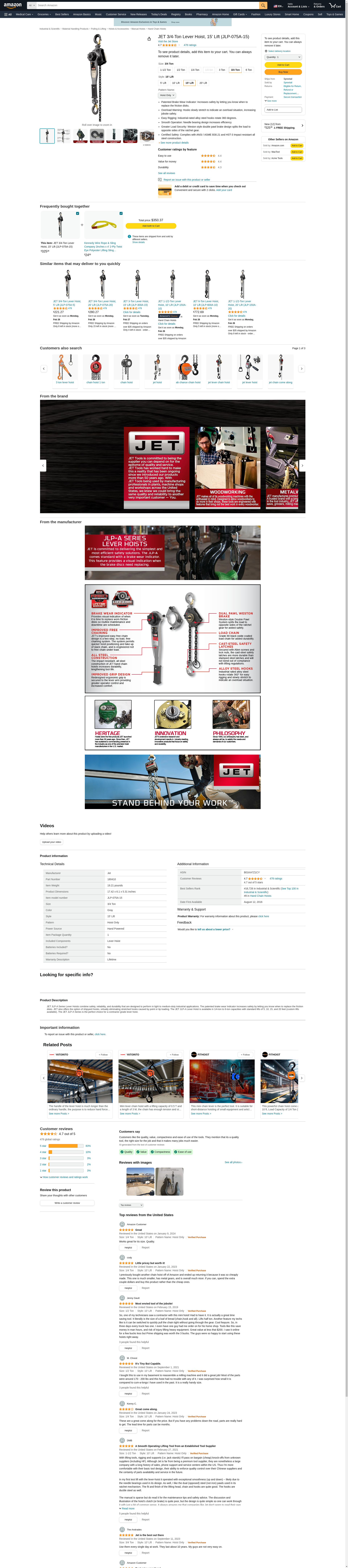 JET JLP-075A-15 3-4-Ton Lever Hoist 15 ft. Lift | CPO Outlets