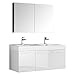 Take your bathroom from basic to beautiful with the Fresca Vista line. The stunning white double sink has a contemporary look with a waved bottom, smooth lines and a thick profile. The contemporary 3 door White wall mounted bathroom vanity offers superior storage, soft close doors and sleek brushed pulls. The frameless Medicine Cabinet has two doors with mirrors on both sides and two adjustable glass shelves to hold items of varying sizes. This lovely vanity and medicine cabinet is available in multiple sizes to give a chic, modern touch to any bathroom.<br/><br/>Features :<br/><br/>- Vanity Materials Constructed Using the Highest Grade MDF with wood, Engineered for Moisture Resistance<br/>- Blum CLIP top Concealed Hinges with Soft Closing BLUMOTION, Slip Resistant Door Handles with Brushed Aluminum Finish<br/>- 3 Soft Closing Vanity Doors<br/>- Blum CLIP top Concealed Hinges with Soft Closing BLUMOTION, Slip Resistant Door Handles with Brushed Aluminum Finish<br/>- 3 Soft Closing Vanity Doors<br/>- Sink Materials: Highly Durable Acrylic-Resin Sink with Integrated Rectangular Overflow.