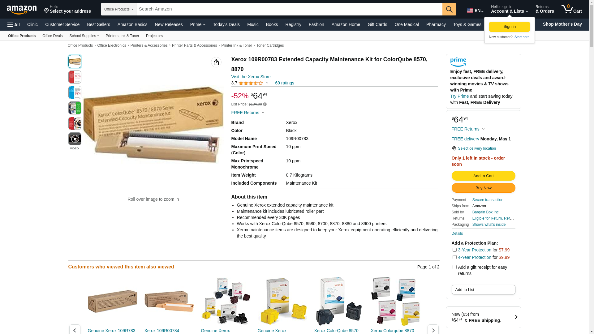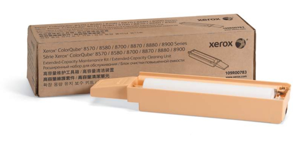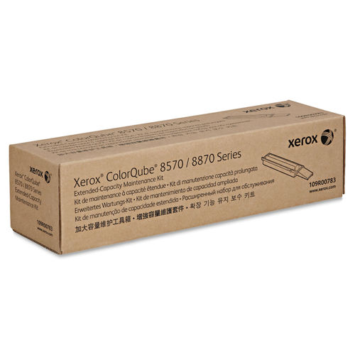 Extended-capacity, cleaning unit/maintenance kit is designed for use in Xerox ColorQube 8570, 8870, 8700 and 8900. Use Xerox maintenance items to keep your Xerox equipment operating efficiently and delivering the best quality. Capacity is approximately 30,000 pages.<br/><br/><strong>Brand Name</strong>: Xerox<br/><strong>Print Technology</strong>: Laser<br/><strong>Product Type</strong>: Maintenance Kit<br/><strong>Typical Print Yield</strong>: 30000 Page<br/><br/><br/><b>General Information</b><br/>Brand Name: Xerox<br/>Manufacturer Part Number: 109R00783<br/>Manufacturer: Xerox Corporation<br/>Marketing Information: Extended-capacity, cleaning unit/maintenance kit is designed for use in Xerox ColorQube 8570, 8870, 8700 and 8900. Use Xerox maintenance items to keep your Xerox equipment operating efficiently and delivering the best quality. Capacity is approximately 30,000 pages.<br/>Product Model: 109R00783<br/>Product Name: 109R00783 Extendend Capacity Maintenance Kit<br/>Product Type: Maintenance Kit<br/><br/><b>Miscellaneous</b><br/>Compatibility: Xerox ColorQube Printers:88708570<br/><br/><b>Product Information</b><br/>Compatibility: Xerox ColorQube Printers:88708570<br/>Print Technology: Laser<br/><br/><b>Technical Information</b><br/>Compatibility: Xerox ColorQube Printers:88708570<br/>Print Technology: Laser<br/>Typical Print Yield: