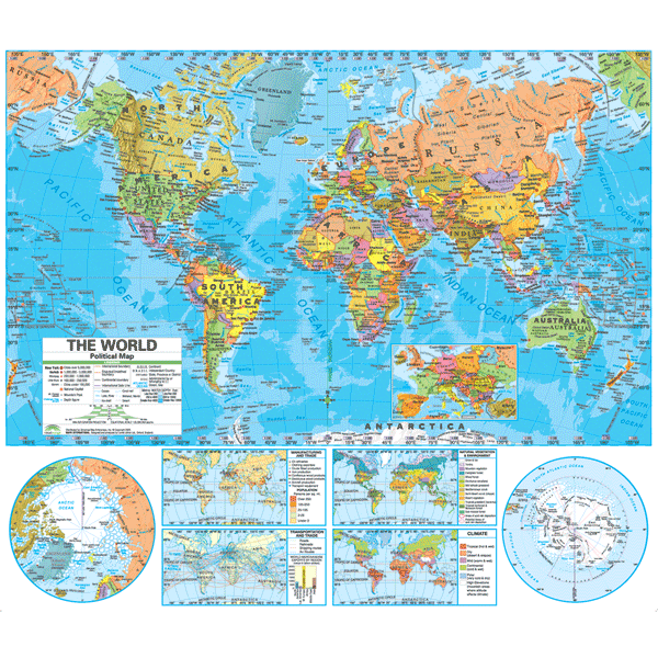 Universal Map 762544066 World Advanced Political Classroom Wall Map On Roller With Backboard