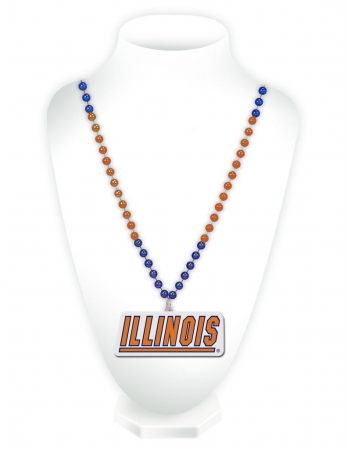Illinois Fighting Illini Beads with Medallion Mardi Gras Style
