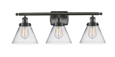 INNOVATIONS LIGHTING 916-3W-OB-G42-LED BALLSTON LARGE CONE 3 LIGHT 26 INCH CLEAR GLASS VANITY LIGHT, OIL RUBBED...