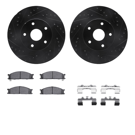 - Front DFC Black Drill/Slot Rotors with Ceramic Pads and Hardware Kit