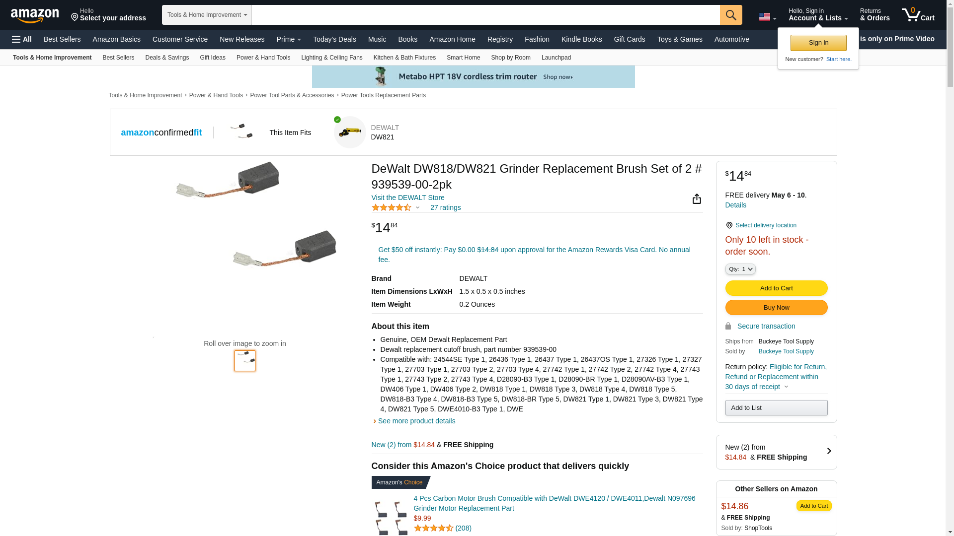 DeWalt DW818/DW821 Grinder Replacement Brush Set of 2 # 939539-00-2pk