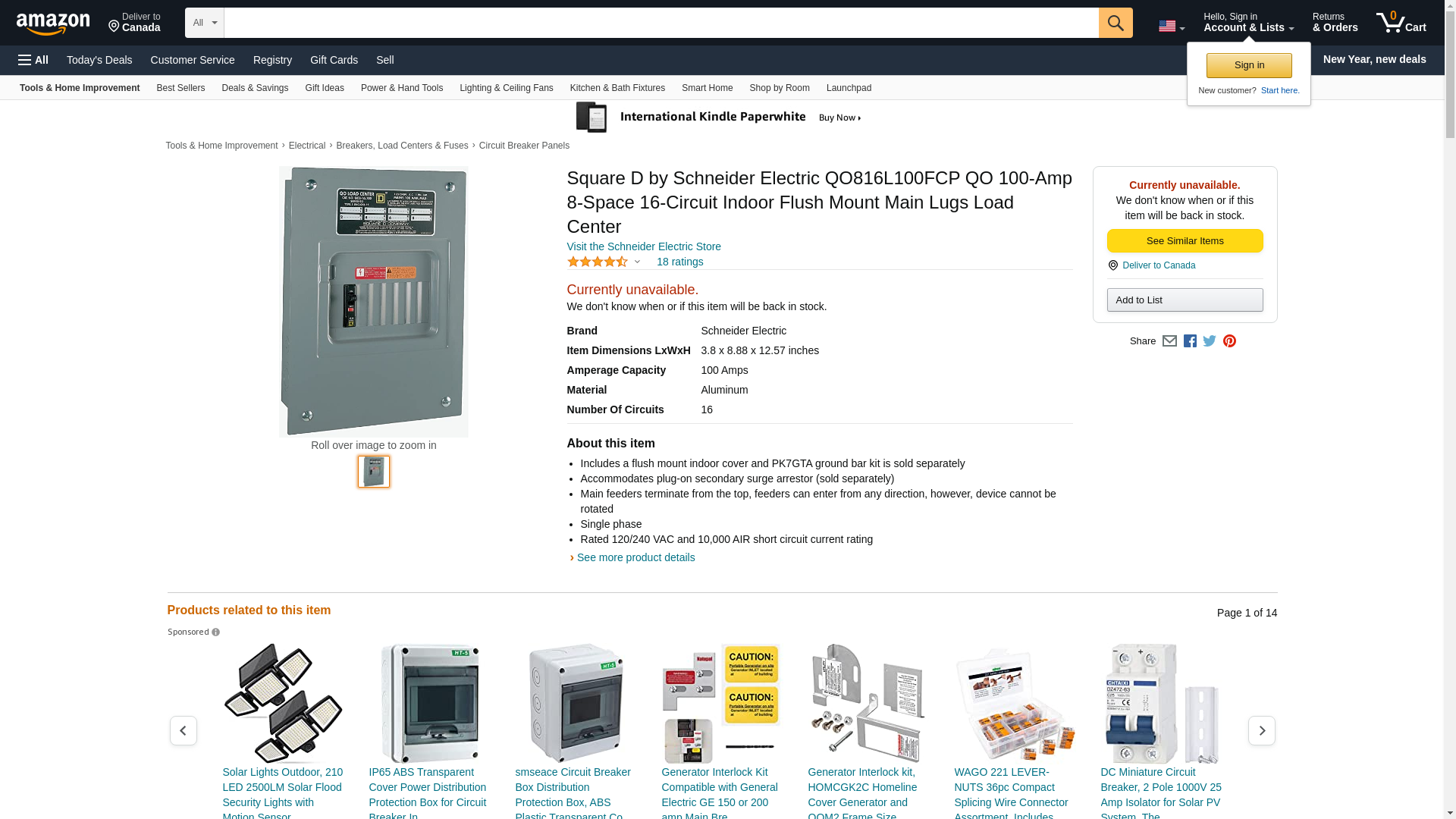 QO816L100FCP Features: -Center is rated for a maximum load of 240 volts and has a 10,000 SCCR. -100A Main lug load center. -Made in the USA. Country of Manufacture: -United States. Product Type: -Manual. Finish: -Gray. Amperage: -100 Amps. Number of Circuits: -16. Load Center Included: -Yes. Dimensions: -1.5" Maximum knockouts. Overall Height - Top to Bottom: -12.86". Overall Width - Side to Side: -8.48". Overall Depth - Front to Back: -2.33". Overall Product Weight: -7 lbs.