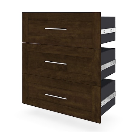 Bestar Pur 3 Drawer Set for 36-inch Wardrobe Organizer in Chocolate, Concealed Storage for Walk-In Closet, Bedroom, Kitchen or Entryway