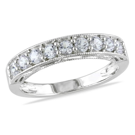 <ul> <li>Gemstone colors: White</li> <li>Gemstone shapes: Round</li> <li>Nine pave-set round-cut created white sapphires each measure 2.5 mm</li> </ul>