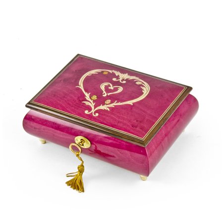 Artistic 36 Note Ornament Style Heart Outline Wood Inlay Musical Jewelry Box - Serenade (Schubert) & Minuet (Mozart)