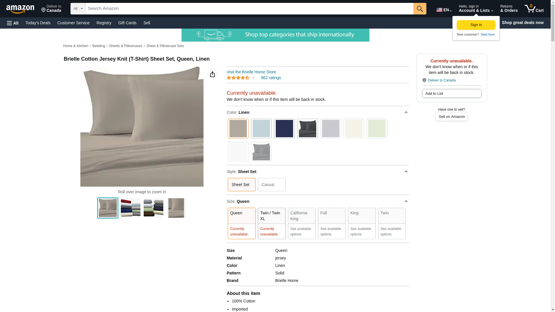 Brielle Home Cotton Jersey Knit (T-Shirt) Sheet Set, Queen, Linen