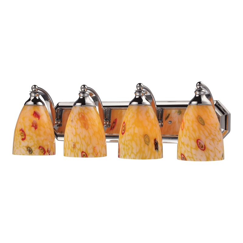 - ELK Lighting 4 Light Vanity In Polished Chrome And Yellow Blaze Glass 570-4C-YW