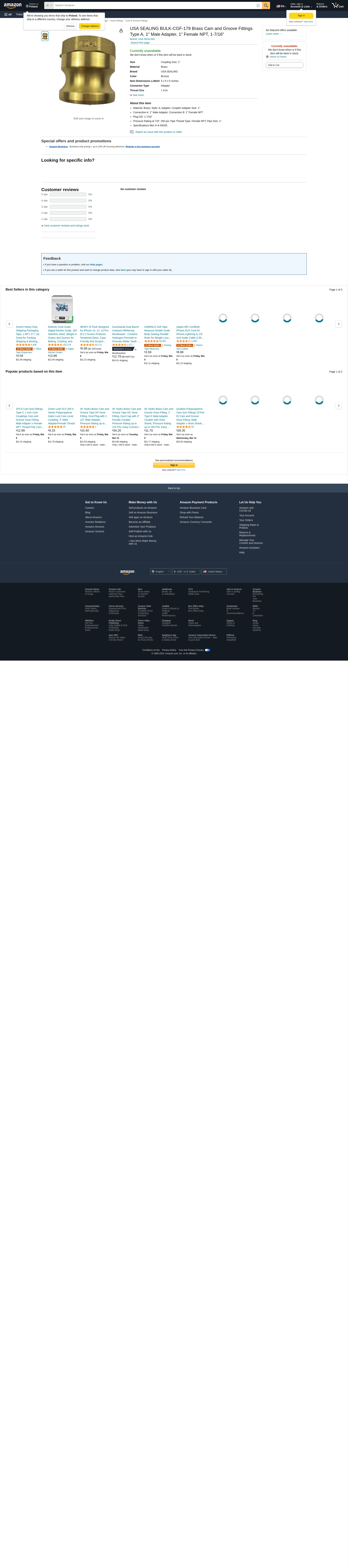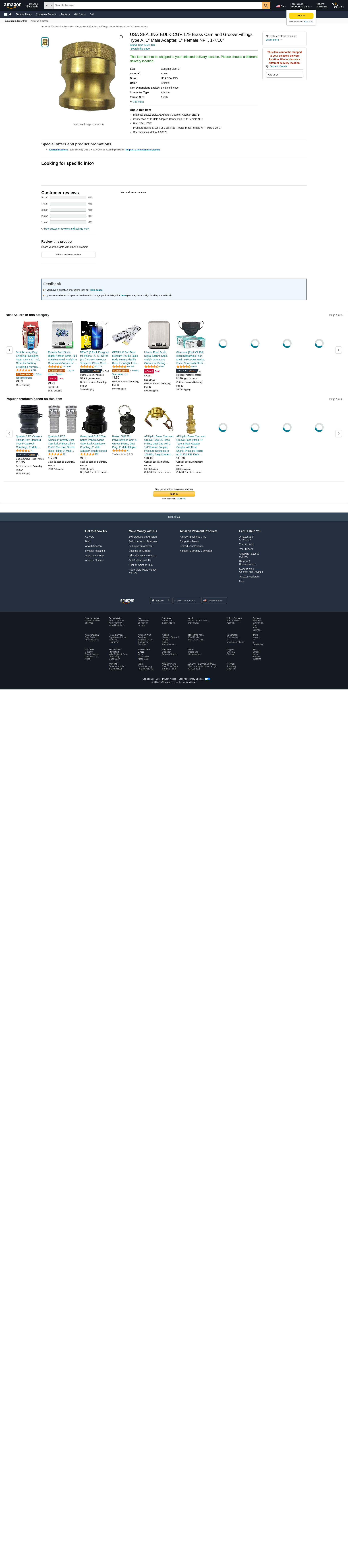 USA SEALING BULK-CGF-179 Brass Cam and Groove Fittings Type A, 1" Male Adapter, 1" Female NPT, 1-7/16"