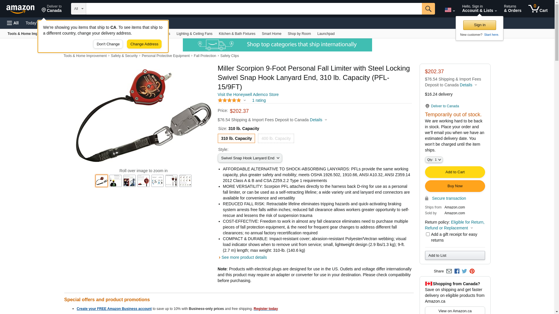 Scorpion (TM) Personal Fall Limiters : * A cost-effective alternative to shock-absorbing lanyards. * Versatile, lightweight fall limiter with quick-activating, high-strength stainless steel braking system reduces free fall distance to inches, not feet. * Greater versatility through dual operation with its selection of integral anchorage connectors available. PFL-5/9FT can be directly attached to the harness D-ring for use as a personal fall limiter, while Nos. PFL-2/9FT and PFL-4/9FT can also be used as traditional anchorage connectors. * Meets newly revised ANSI Z359.1-2007 standard (No. 1XET5), see page 2381 * Corrosion-resistant internal parts * Stainless steel/aluminum body with high-impact polymer cover * 310-lb. maximum working load * Visual load indicator signals when the unit must be removed from service * No annual factory recertification required