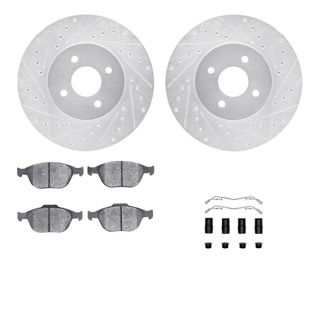 Dynamic Friction Company Front Brake Rotors Drilled and Slotted Silver with 5000 Euro Ceramic Brake Pads includes Hardware - 7612-54006