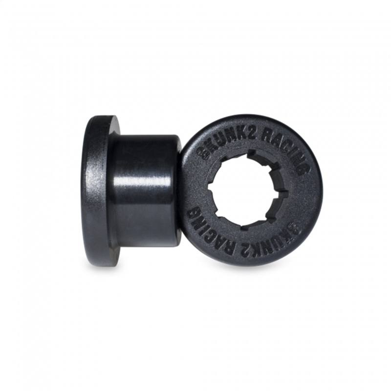 Black Polyurethane Replacement Bushing for Skunk2 '96-'00 Civic EK Pro Plus Front Camber Kit. 1996 - 2000 Honda Civic (CX, DX, EX, GX, HX, LX, Si) 1 Qty. Two Pieces Will NOT fit older Skunk2 Pro Series Rear Lower Control Arms. DO NOT INSTALL DRY - Requires White Lithium or other synthetic, water-resistant grease for Installation. Do NOT use petroleum-based lubricant like WD-40 as using such will cause accelerated deterioration of bushing. When replacing worn bushings be sure to retain and reinstall the metal sleeve that installs inside of the bushings we do not currently offer a replacement for them
