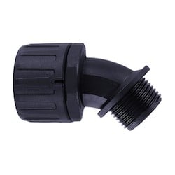 - <b>Price For:</b> Each <b>Conduit Configuration</b>: 45 Degree <b>Trade Size</b>: 1" <b>Conduit Material</b>: Nylon 6.6 (Polyamide 6.6) <b>Conduit Colour</b>: Black <b>External Length</b>: 81mm <b>IP / NEMA Rating</b>: IP66 <b>Product Range</b>: HelaGuard Series