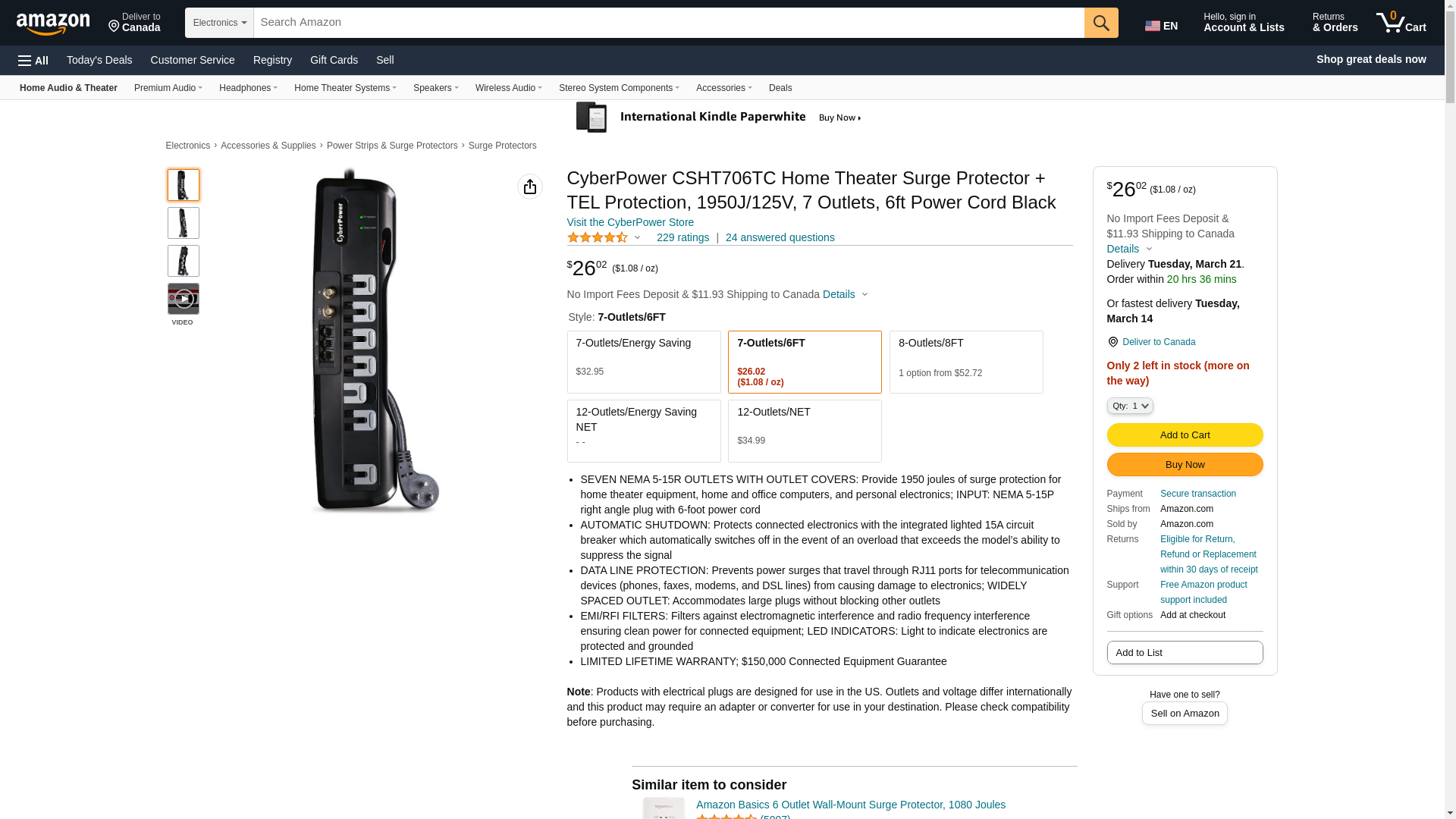 | Feature | 7 Surge Protected Outlets, 1 Widely Spaced with Safety Covers |
