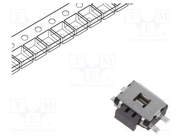 | Feature | Size: 4.7 x 3.5 mm; ActuationForce: 1.6 N; ActuatingStyle: Side Actuated; TerminationStyle: Right Angle / Surface Mount; |