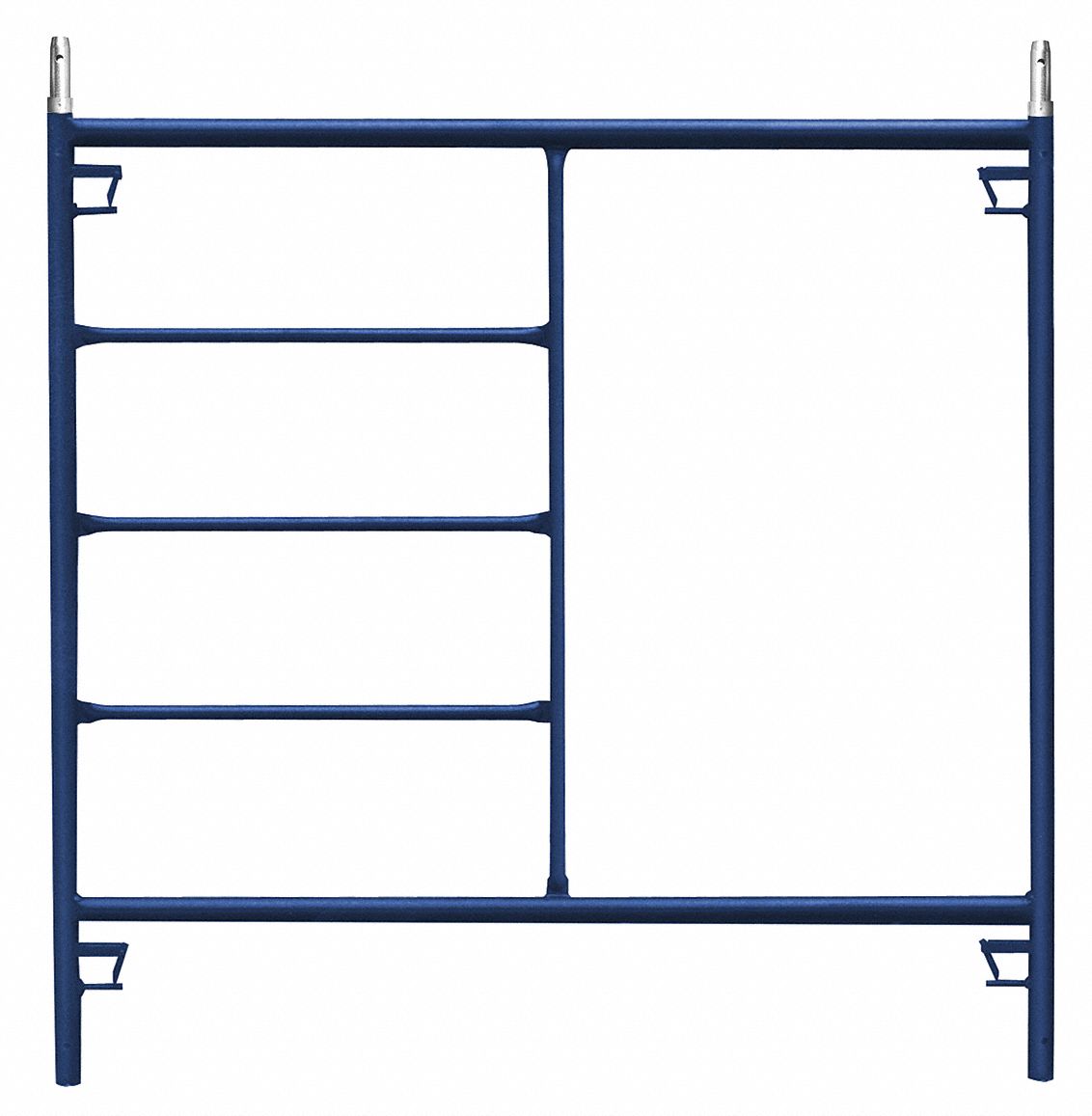 | Feature | Price For: Each Includes: Coupling Pins and Spring-Locks Overall Width: 72" Standards: ANSI A10.8 Overall Height: 5 ft. 5" Finish: Powder Coated Material: Steel, Plastic Item: Scaffold Frame Load Capacity: 750 lb. Overall Depth: 24" Country of Origin (subject to change): Canada |
