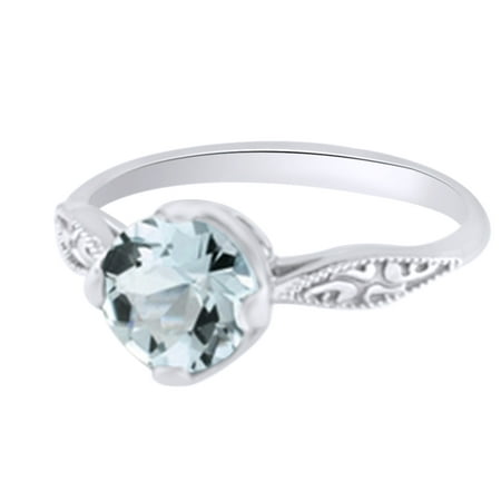 <ul> <li>MADE OF SOLID GENUINE 14K WHITE GOLD - This Ring is Expertly crafted in 14k Solid White Gold , Authenticated with a 14k Stamp</li> <li>(1.25 cttw) Round Cut Simulated Blue Aquamarine Having Clarity Of VVS1-VVS2</li> <li>Stone Setting :- Prongs</li> <li>Stone Creation Method :- Simulated</li> <li>We do Custom sizing (Half size also) as per your needs. If The Ring Size is not mention in the listing, Please Email us with your size once you placed the order.</li> </ul>