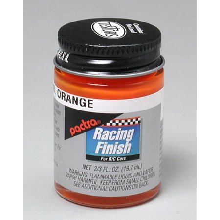 <p><br /><br />This is a 2/3 oz Bottle of Pactra Polycarbonate<br />Fluorescent Orange Colored Paint.<br /></p> <p><br />FEATURES: Used on the underside of clear Lexan R/C model bodies.<br />Paint chemically bonds to Lexan, making it extremely resistant to<br />cracking, chipping and impact damage.<br />Bottle opening is the same size as most airbrush accessories making<br />airbrushing and mixed paint storage more convenient.<br />Contains no lead.<br /></p> <p><br />INCLUDES: One 2/3 oz glass Bottle of Polycarbonate Fluorescent Orange Colored<br />Paint<br /></p> <p><br />REQUIRES: Eye, skin and lung protection.<br />Lacquer thinner for thinning.<br /></p> <p><br />SPECS:NET Fluid Ounce: 2/3 (19.7mL)<br /></p> <p><br />COMMENTS: Directions: Stir well, make sure surface is clean, if thinning, use<br />R/C Lacquer Thinner.For Pearls and Metallics it is recommended<br />to airbrush for best results.<br />Caution: Contains Ketones.Flammable liquid and vapor.<br />Keep out of the reach of children.<br />Avoid breathing vapors, use only with adequate ventilation.Avoid<br />eye and prolonged skin contact.Flush eye contact for 15 minutes.<br />If swallowed get immediate medical attention.<br /> bmb 10/19/00<br />ir/jl<br /><br /></p>