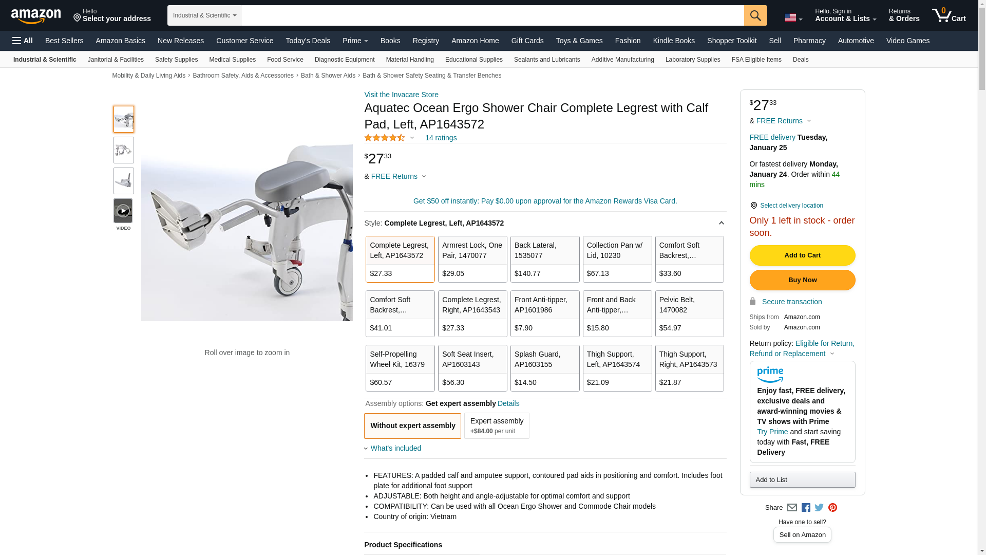 Aquatec Ocean Ergo Shower Chair Complete Legrest with Calf Pad, Left, AP1643572
