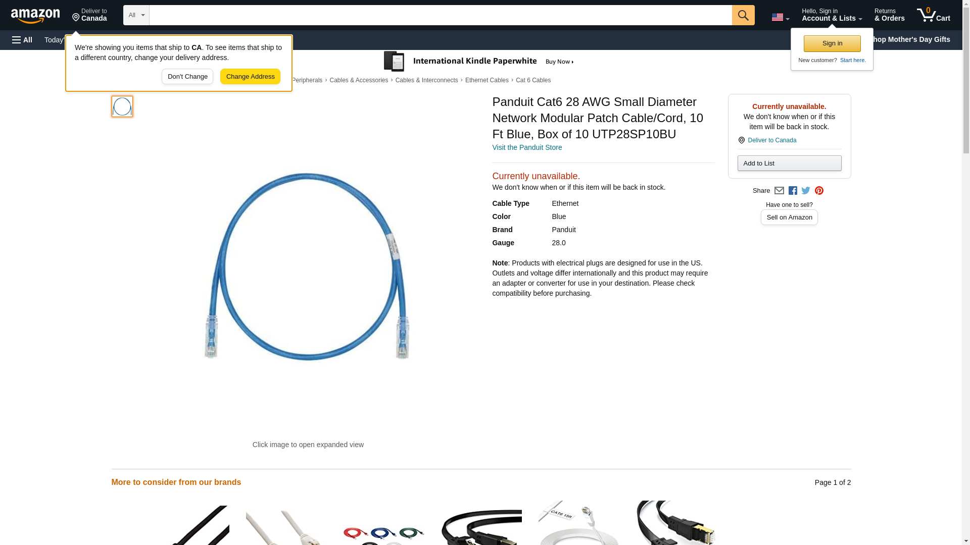 Panduit Cat6 28 AWG Small Diameter Network Modular Patch Cable/Cord, 10 Ft Blue, Box of 10 UTP28SP10BU
