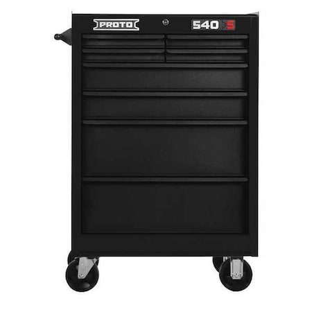 J4834 Rolling Cabinet 540S Series Heavy Duty Width 27 In. Depth 18 In. Height 42 In. Number of Drawers 8 Black Drawer Color Black Drawer Capacity 200 lb. Ball Bearing Full Extension Drawer Slides Gloss/Matte Finish Storage Capacity 9829 cu in. Load Rating 1800 lb. Caster Size 5 in x 2 In. Number of Shelves 0 Steel 18 Gauge Work Surface Material Steel Vinyl Caster Wheel Material Polyurethane Caster Type (2) Fixed with Lock (2) Swivel Heavy Duty Keys Easy Grip Steel Handles