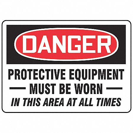 DANGER PROTECTIVE EQUIPMENT MUST BE WORN IN THIS AREA AT ALL TIMES 10" x 14" Plastic Sign