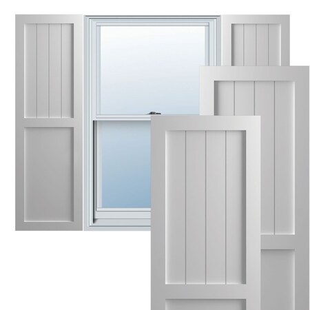 Ekena Millwork TFP101FC12X040PR True Fit PVC Farmhouse/Flat Panel Combination Fixed Mount Shutters, (Per Pair-Hardware Not Included), 12"W x 40"H, Primed