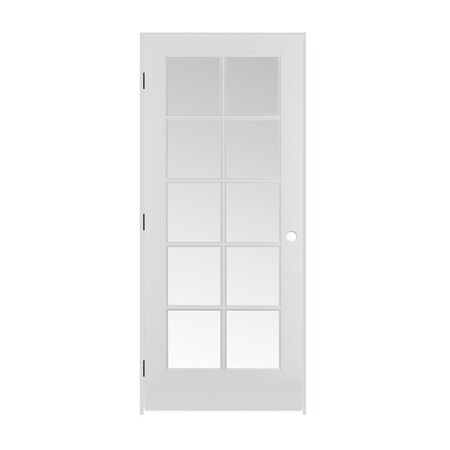 28" x 80" x 1-3/8" Primed 10-Lite with Clear Tempered Glass Interior French 7-1/4" RH Prehung Door