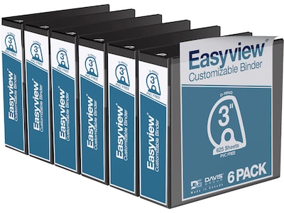 Davis Group Easyview Premium 3" 3-Ring View Binders, D-Ring, Black, 6/Pack (8405-01-06) | Quill.com
