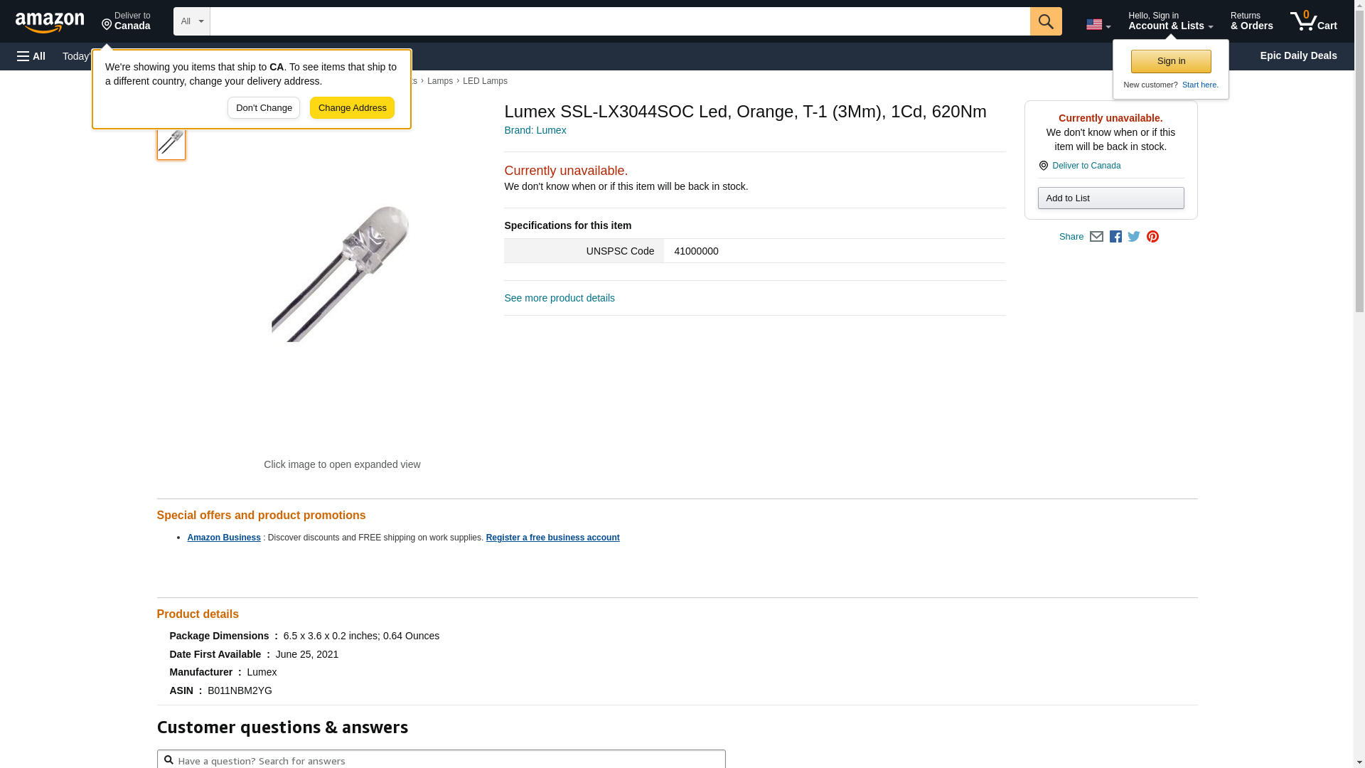 LUMEX SSL-LX3044SOC Super Orange 3 mm 30° Water Clear 1000 mcd 2 V Through Hole LED - T-1 - 1000 item(s)