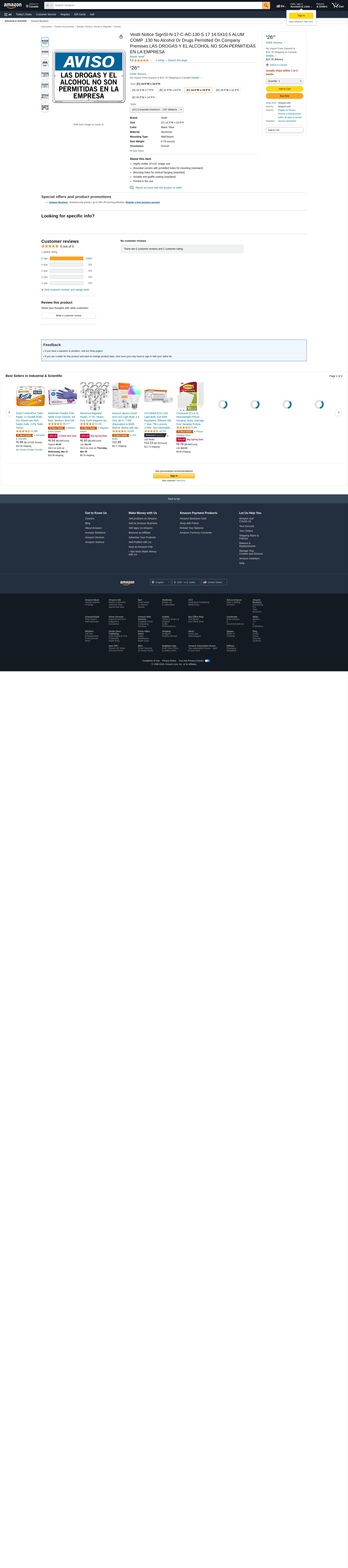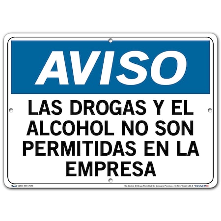 Vestil Notice SignSI-N-17-C-AC-130-S 17 14.5X10.5 ALUM COMP .130 No Alcohol Or Drugs Permitted On Company Premises LAS DROGAS Y EL ALCOHOL NO SON PERMITIDAS EN LA EMPRESA