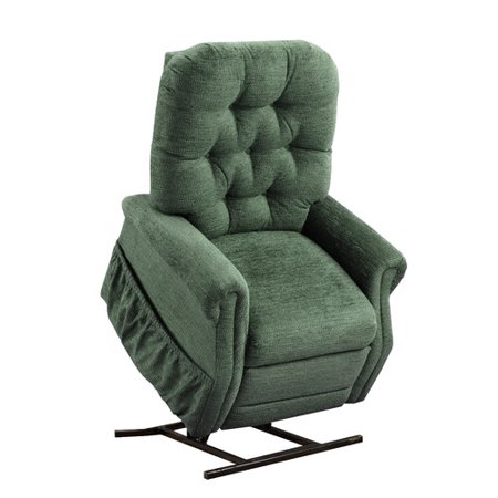 MLF1118Features: -Magazine pocket on outside right-hand side of chair. Armrest and headrest covers are included at no additional charge. Battery Back-up System is standard. **Note: Battery back-up system does not work with the Ultra EZZ, 2, 4 and 6 heat/vib systems.. -The frame of the chair is all kiln dried hardwood. All stress points are kiln dried oak. All joints are glued and connected with steel fasteners. Uni-construction of seat-back assembly is independently lab tested for strength and durability. Gang nails are used at all other critical joints or stress points. All bolts used are grade 5. (We are the only lift chair mfr. that uses grade 5 bolts) All bolts go entirely through the wood. No lag screws are used to secure the mechanism. The mechanism is secured by special locking T-nuts to ensure that the mechanism stays tight throughout the lifetime of the chair. All critical connection points for reclining hardware, etc. have a double locking nut, nylon aircraft grade ocking nut. All wood screws used are the best and strongest available. Corner blocks are used throughout the chair at all critical points for added strength. An extra rail is used across the top of the seat back to help keep the back straight and square.. -Acella-Flex foam is used for padding, and this is a foam developed for use in better upholstered furniture. Acella-Flex foam is the closest to a perfect seating configuration in the industry. Acella-Flex basically pushes back 1 lb. For every pound of weight exerted. This characteristic makes the chairs basically sit the same for a person of 90 lbs. or a person of 300 lbs. Acella-Flex will keep 99.9pct of its original shape and size, while most conventional foam will shrink 10-15pct in size over the first couple of years. Med-Lift uses a special break-in process before the foam is ever cut to make the foam feel good from the first use forward. As an added benefit to our foam, we glue a layer of super soft on top of the Acella-Flex, which gives a very nice feel to the seat, but you still have the Acella-Flex base for strength and long life. This feature also makes the seat foam pressure reducing. At this time, no other life chair manufacturer uses this seating configuration or benefit.. -Seat springs used are 9 gauge Morley system no sag springs. Seat springs are tied together with tie wire to make every spring work together as a seat unit. 5 Seat springs are in this chair, and they are correctly spaced on the spring rails by a special clip rail machine. The front seat rail on the frame is larger and thicker than competitors' products, which makes the seat much stronger and durable. There is a retainer rail secured by steel brads o top of the seat springs to make sure they do not come loose. The back springs used are 12 gauge, and are also tied together with special tie wire for more comfort and endurance. To ensure that the seat springs do not cut into the bottom of the seat foam, a nova bond pad is used. The fiber used in the backs is a dustless, odorless, non-allergenic, conjugated fiber.. -The fabric used on all Med-Lift chairs meets both CAL 117 ad UFAC requirements of flammability. This is tested by an independent lab yearly to ensure correct specifications. Extra padding is used in any place on the frame that wood comes in direct contact with wood. The wood is surrounded by an extra layer of foam or micro foam to ensure long fabric life. This extra padding makes the arms, backs, front arm, etc. feel softer and more plush.. -The foundation of the chair is the lift base. We have tested all lift bases on the market today and have determined that the Super Sagless lift base (made in U.S.A.) is the best available. The lift base must be as wide as the base of the chair. The Super Sagless base we use is the most stable base in the upright lifted position on the market today. We offer a low volt quiet motor on this model.. Country of Manufacture: -United St