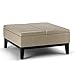 SIMPLIHOME Dover 36 inch Wide Square Coffee Table Lift Top Storage Ottoman, Cocktail Footrest Stool in Upholstered Satin Cream Tufted Faux Leather for the Living Room, Contemporary