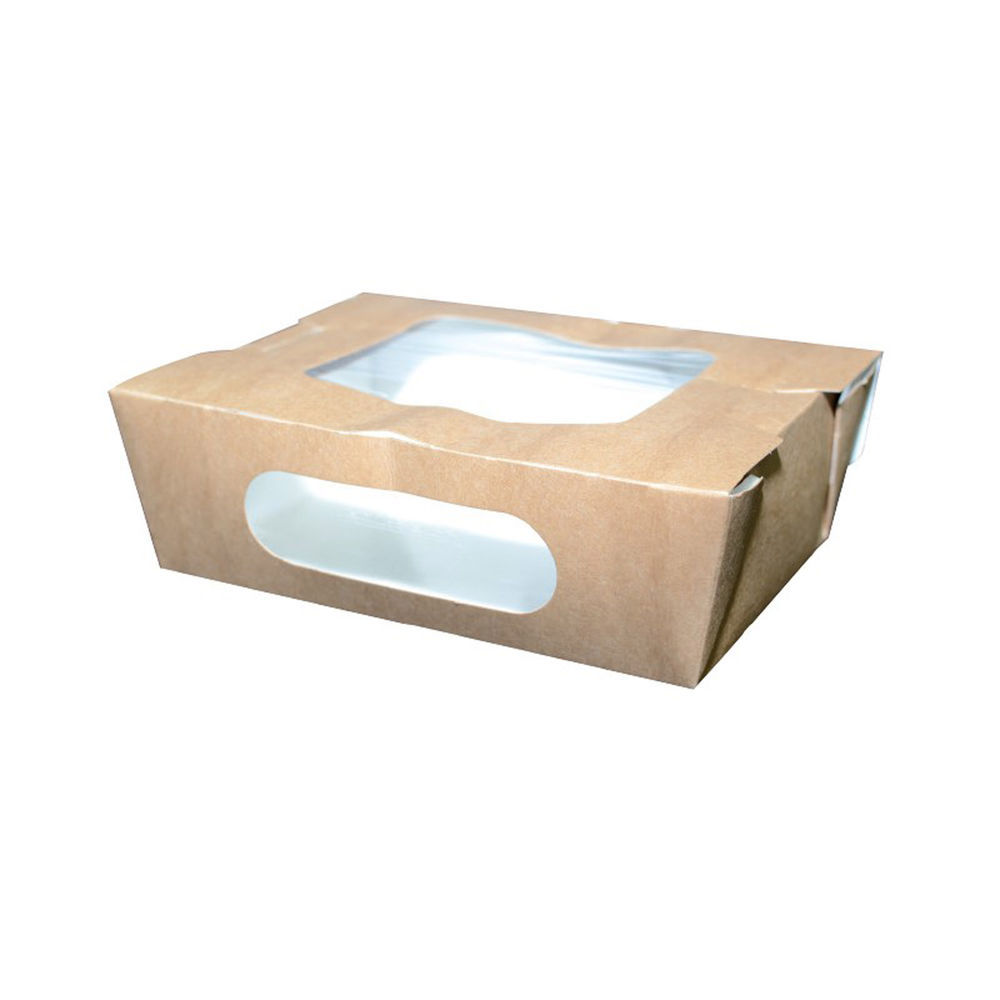 PacknWood 210BOXS752 24 oz. Kraft Paper Salad Box with 2 Windows