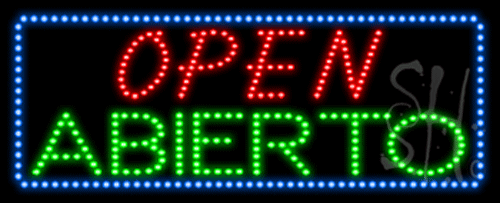 - Open Abierto Animated LED Sign is high impact, eye catching, real LED sign.